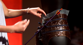 se non sopporti il calore esci dalla cucina. I designer sono spinti al limite della loro creativita’ e temperamenti, il loro stato d’animo sara’ visibile in tutte queste sfide. Usando utensili di plastica per creare un accessori, imballaggi da pasticceria per creare indumenti intimi e la lana di acciao per creare un indumento. Ispirazione? Una balestra naturalmente! Solo in due andranno in finale per competere il titolo di Design Genius.